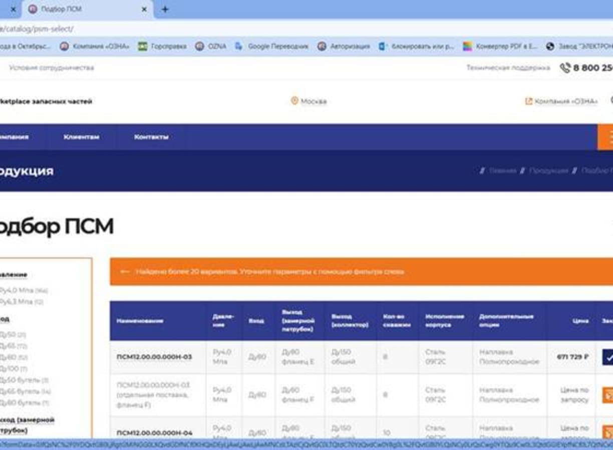 Выбрать можно по нескольким параметрам: Давление, Ду на входе и на выходе (как через патрубок, так и через коллектор), количество скважин, исполнение корпуса, дополнительные опции (наплавка, сероводородное или полнопроходное исполнение и т.д.). результат отбора тут же демонстрируется в таблице справа и одним кликом можно сразу отправить нужный вам вариант в корзину и продолжить покупки. Есть возможность запросить цену при необходимости. При возникновении вопросов можно позвонить по бесплатному номеру 8 800 250 21 01 или задать вопрос в чате.